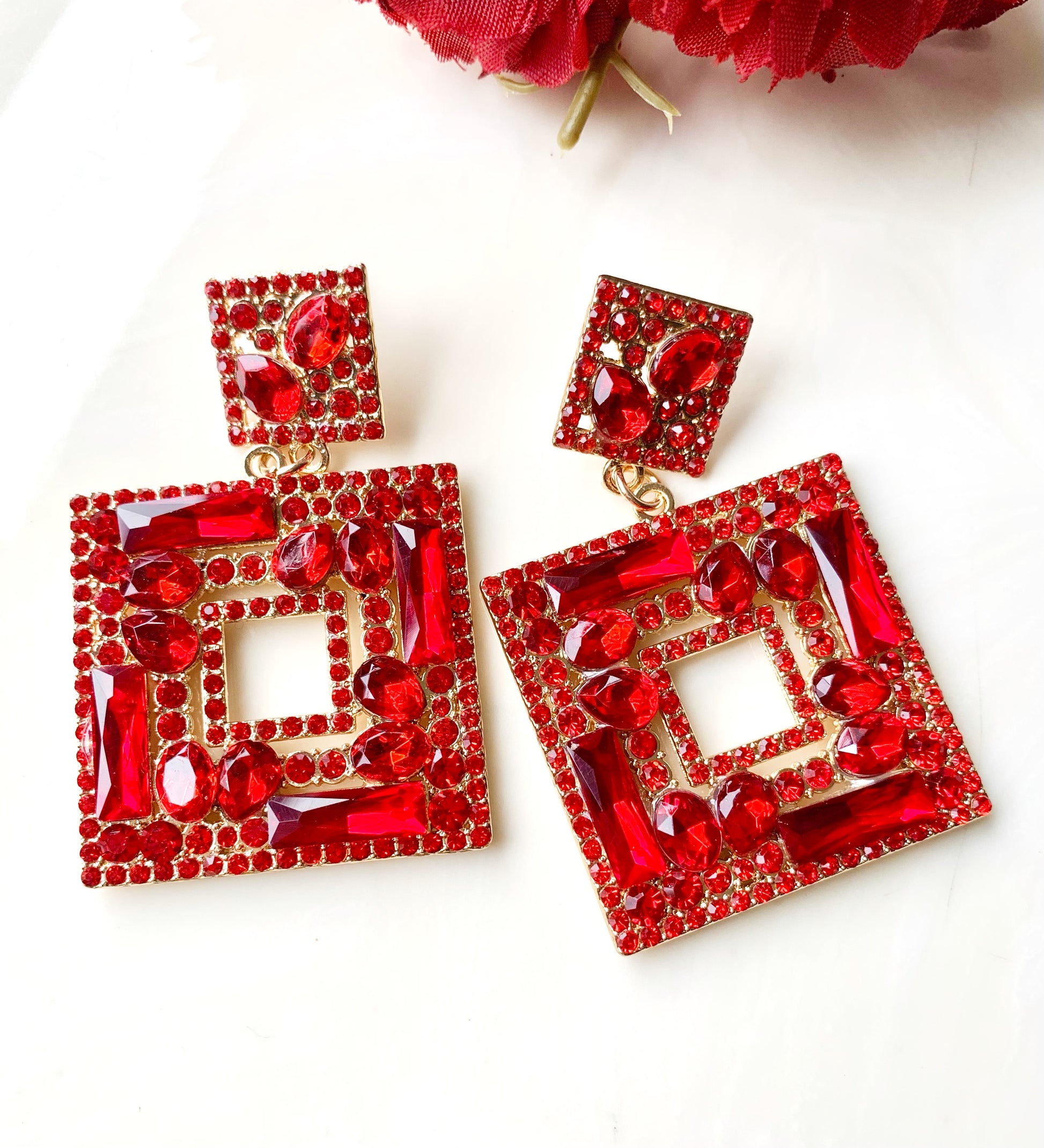 Your jewelry collection just isn't complete without that bold, fierce pop of red! These fiery red crystal earrings will fire up any ensemble!